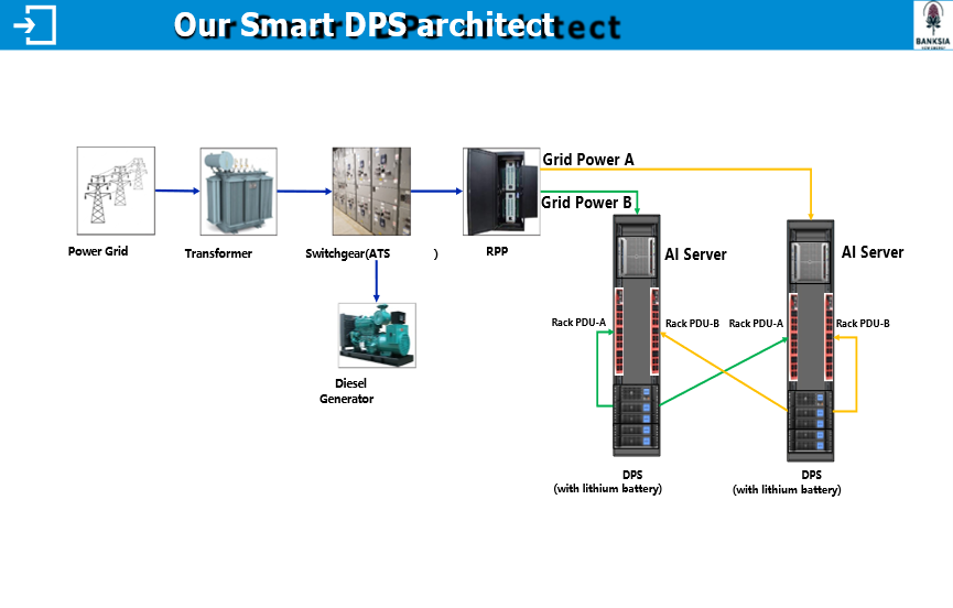 DPS with back up lithium battery is deployed in each rack, which can save more space over lead-acid batteries design typically adopted in many old data centers’ design plan.